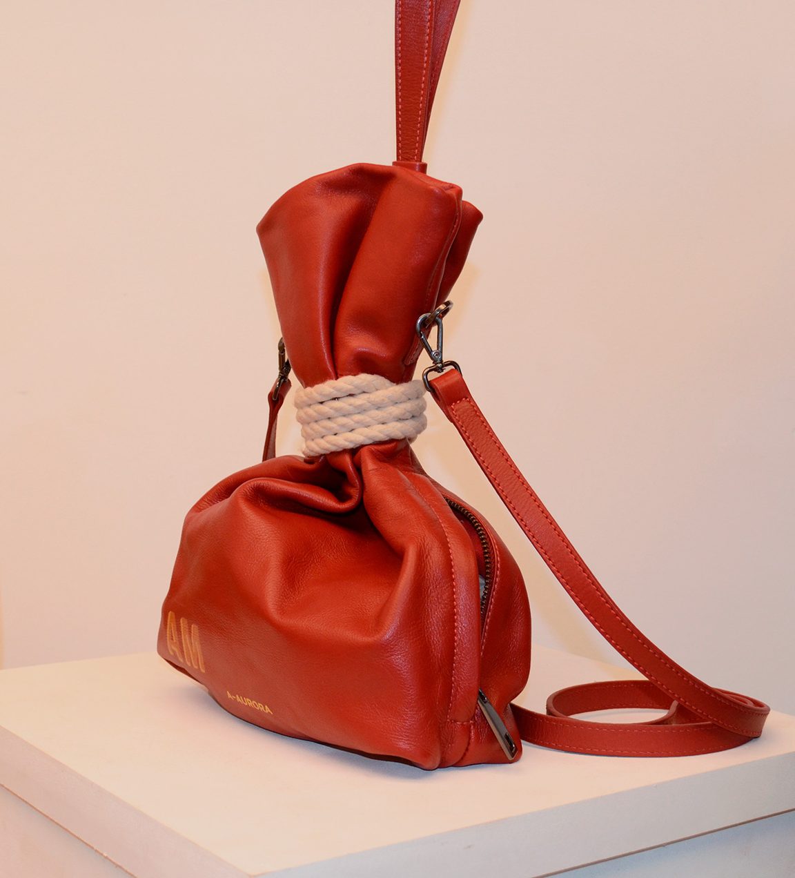 Duas opções de alça: uma alça para mão e outra opção para o ombro, fechamento lateral em zíper.