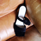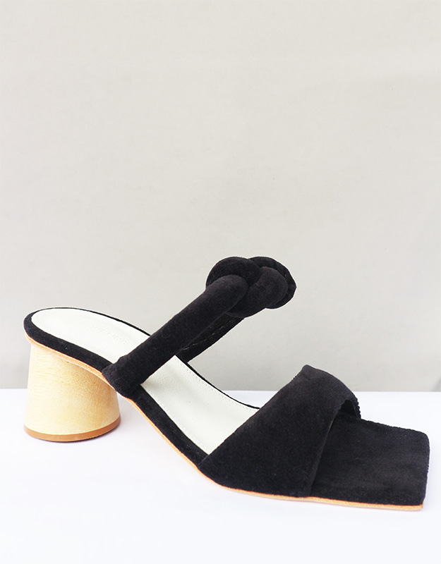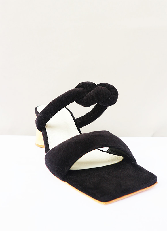 Sandália bico quadrado com duas tiras em veludo na cor preta acolchoadas.