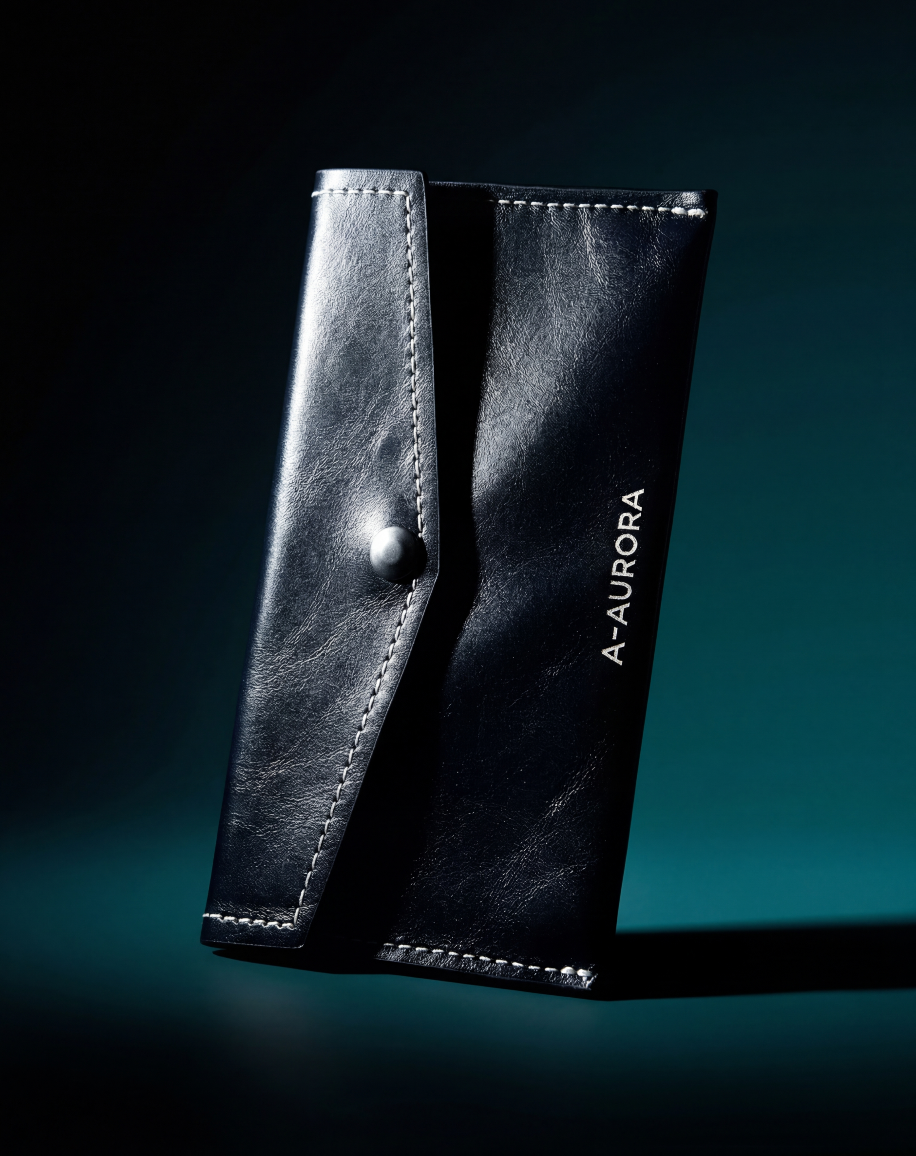 Pasta em couro flyer com costura pontilhada e clichê em dourado. Fechamento por imã embutido. Comporta laptop Apple 13".